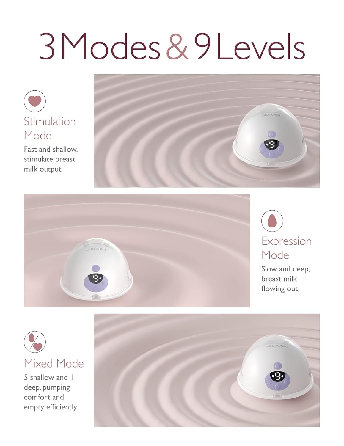 Featuring advanced micro-vibration technology, the Momcozy M5 enhances milk flow for optimal pumping performance. With 3 pumping modes (Stimulation, Expression, Mixed) and 9 intensity levels, you can fully personalize your pumping session to suit your comfort and needs.