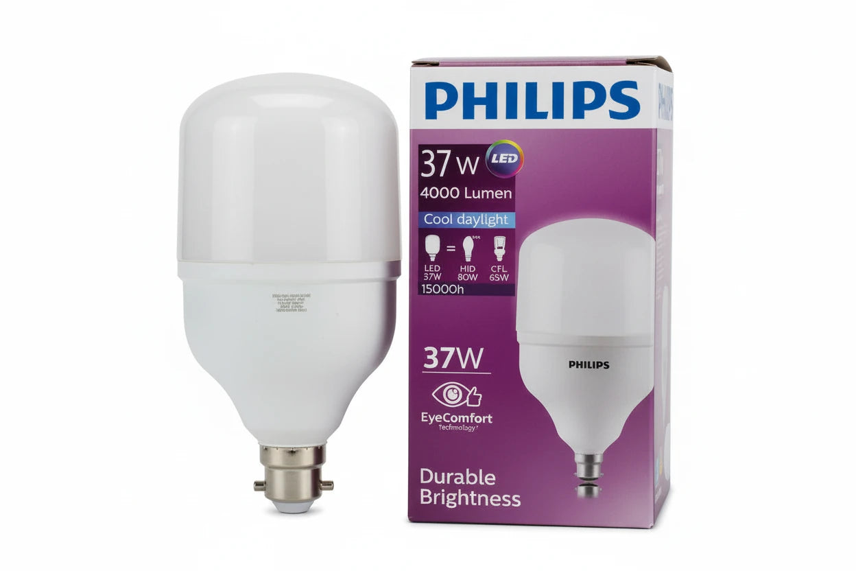 The Philips T-Force Core 37W B22 LED is a powerful high-brightness bulb designed to replace conventional CFL and halogen lamps in shops, workshops, homes, halls, and industrial spaces.