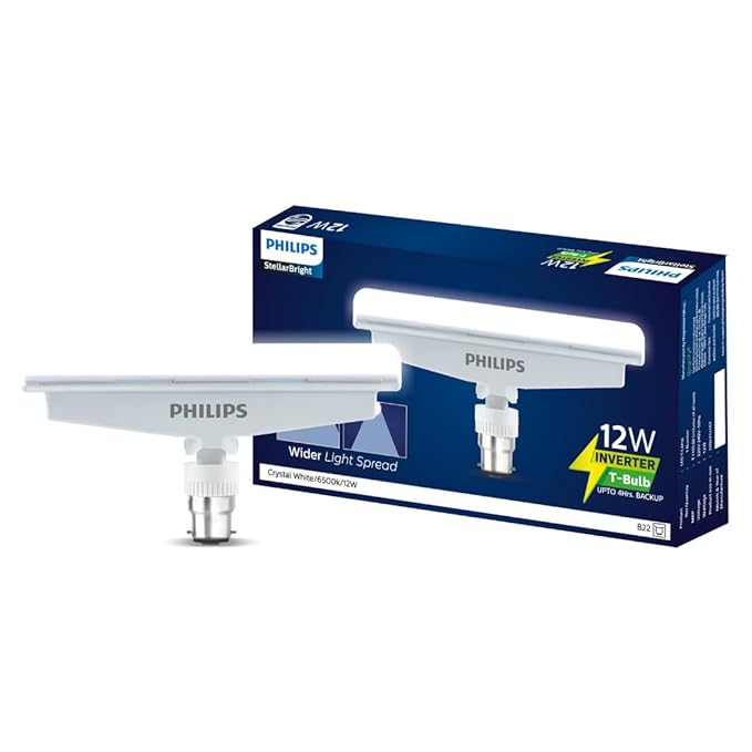 The Philips 12W Emergency LED T-Bulb is a reliable lighting solution that automatically switches on during power cuts, ensuring uninterrupted illumination for your home, hall, bedroom, or office. Designed with a built-in rechargeable battery, this inverter bulb provides bright Crystal Light output and continues to glow even when mains power fails.